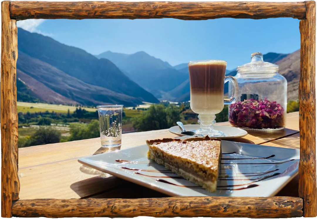 Jugos naturales de sabores clásicos y además de sabores exóticos como el Copao, Guayaba, Mango y Maracuyá, además ofrecemos preparaciones originales y exclusivos de la casa como el Merengado, Frescura Tropical y Copao Nativo, Servicio de Cafetería (Café de Grano y Té de Hierbas) Pie de limón,kuchen de Guayaba, kuchen de Higo con Nuez, kuchen de Copao, empanadas de queso y nuestra especialidad: Empanada Rosi(Queso de Cabra, Aceituna Sevillana con un toque de Merquén y Orégano), Sandiwch Cordillerano(Tomate,Palta, Queso de Cabra en Pan Amasado). Sándwich Arriero (Tomate,Cebolla y Charqui de Cabra en Pan Amasado)